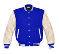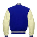 Men Royal Blue Wool & Cream Real Leather Varsity Jacket