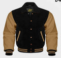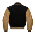 Men’s Black Wool & Camel Real Leather Collar Varsity Jacket