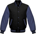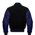 Men’s Black Wool & Navy Blue Real Leather Collar Varsity Jacket