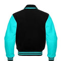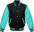 Men’s Black Wool & Turquoise Real Leather Collar Varsity Jacket