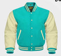 Men Turquoise Wool & Cream Real Leather Varsity Jacket