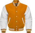 Men Yellow Wool & Cream Real Leather Varsity Jacket
